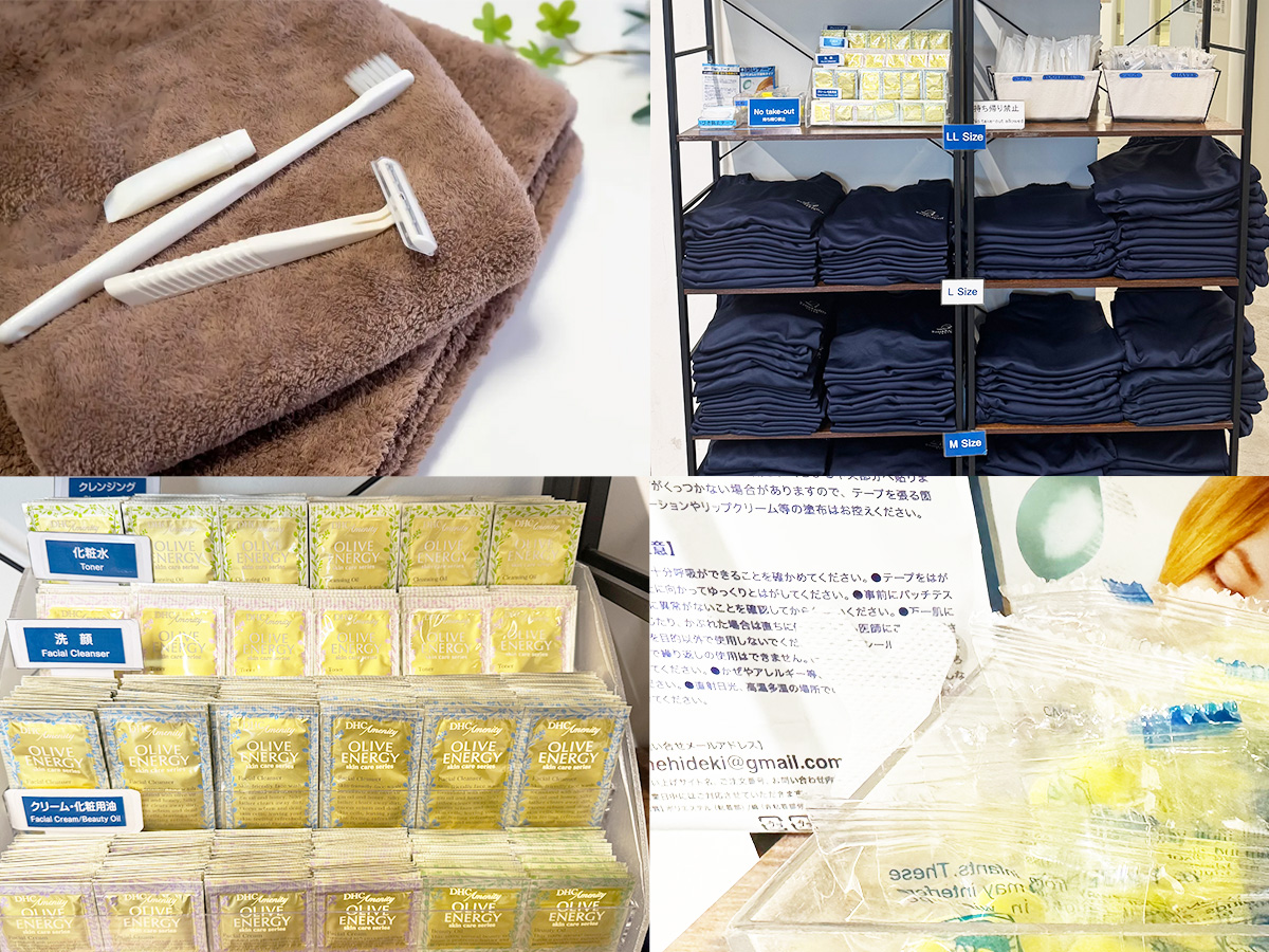 宿泊、デイユースをご利用のお客様には、それぞれ無料でアメニティをご利用いただけます。歯ブラシやシェーバー、化粧水や洗顔フォーム洗顔クリーム、耳栓やいびき防止テープなどご利用いただけます。