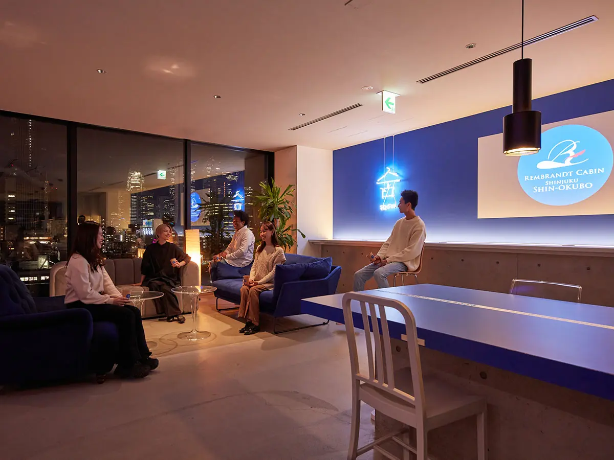 街歩きの一休みや次に行きたいスポットを探すのにも最適。多種多様なカルチャーに触れながら新大久保の地域性と共同性をつなぐ場所がレンブラントキャビン新宿新大久保です。