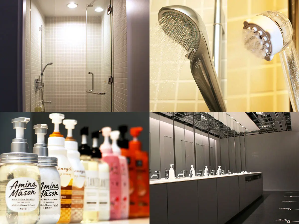 シャワールームは完全な個室になっており、シャワーヘッドは「ミラブル」「リファ ファイン バブルU」を導入しておりますので、リラックスできるシャワータイムをお過ごしいただけます。宿泊・デイユースでのご利用のお客様はもちろん、シャワーのみワンコイン(500円)でご利用いただけます。女性シャワーブースには、女性の口コミや人気のあるシャンプー、トリートメントを6種類ご用意。男性用にもお肌に優しい化粧水もご用意してますので、是非お気軽にご利用ください。