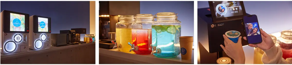 カフェは、『SOOM CAFE-숨-(スムカフェ)』としてオープンをし、韓国語の息を意味している숨を店名に「韓国気分を味わいながら、一息つける場所」をコンセプトに営業を開始いたします。スムカフェでは、サービスとしてフリードリンクやカプセルトイなどのサービスやフードプリンターの有料利用を提供するなどフォトジェニックな空間でゆったりと寛ぎながらジブン時間をお過ごしいただけます。尚、宿泊ご利用の方は無料にてご利用いただけます。