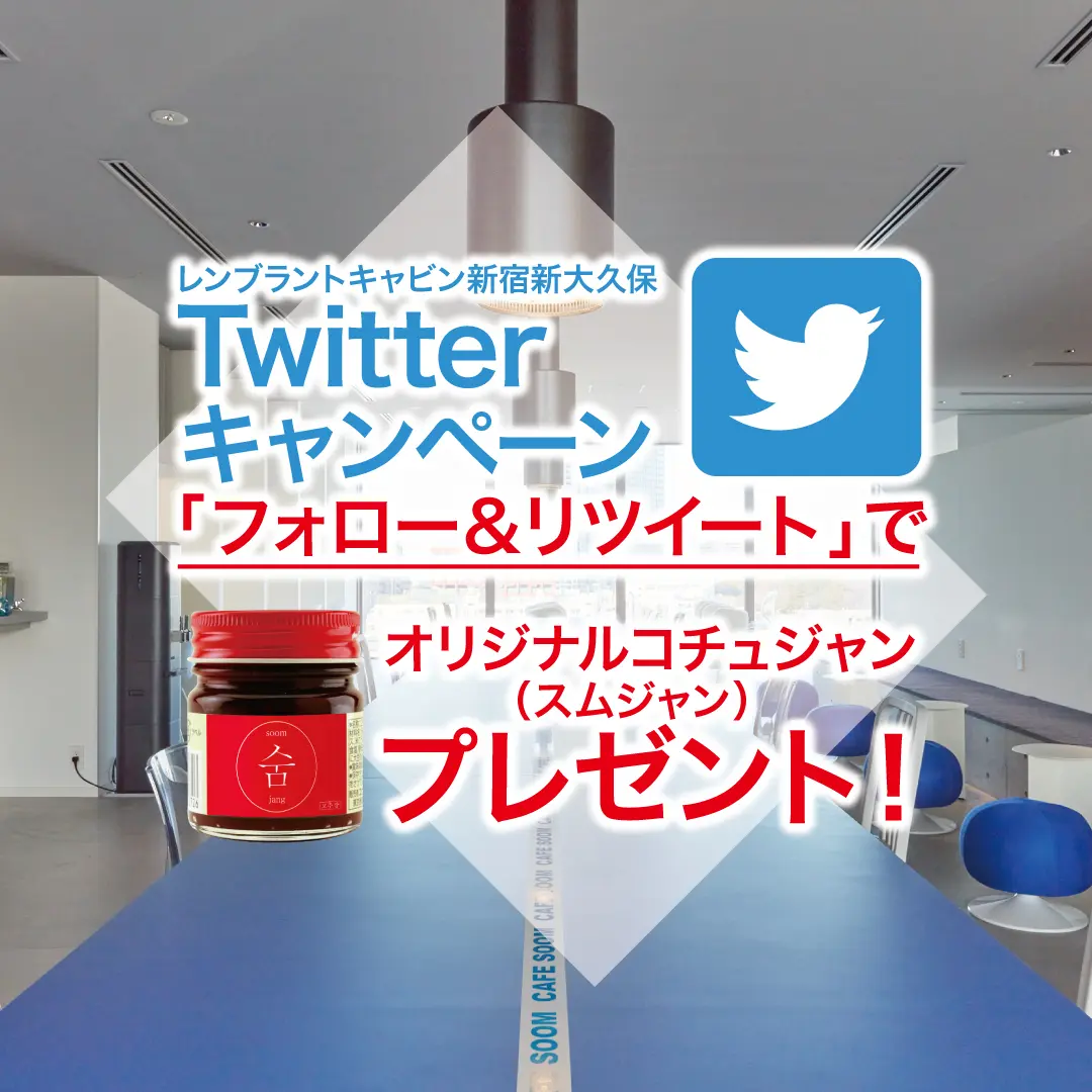 レンブラントキャビン新宿新大久保の公式SNSアカウントにてSNSキャンペーンを実施いたします。対象アカウントは、InstagramとTwitter。 参加様様には、オリジナルコチュジャン「スムジャン」をホテルフロントにてプレゼント!!