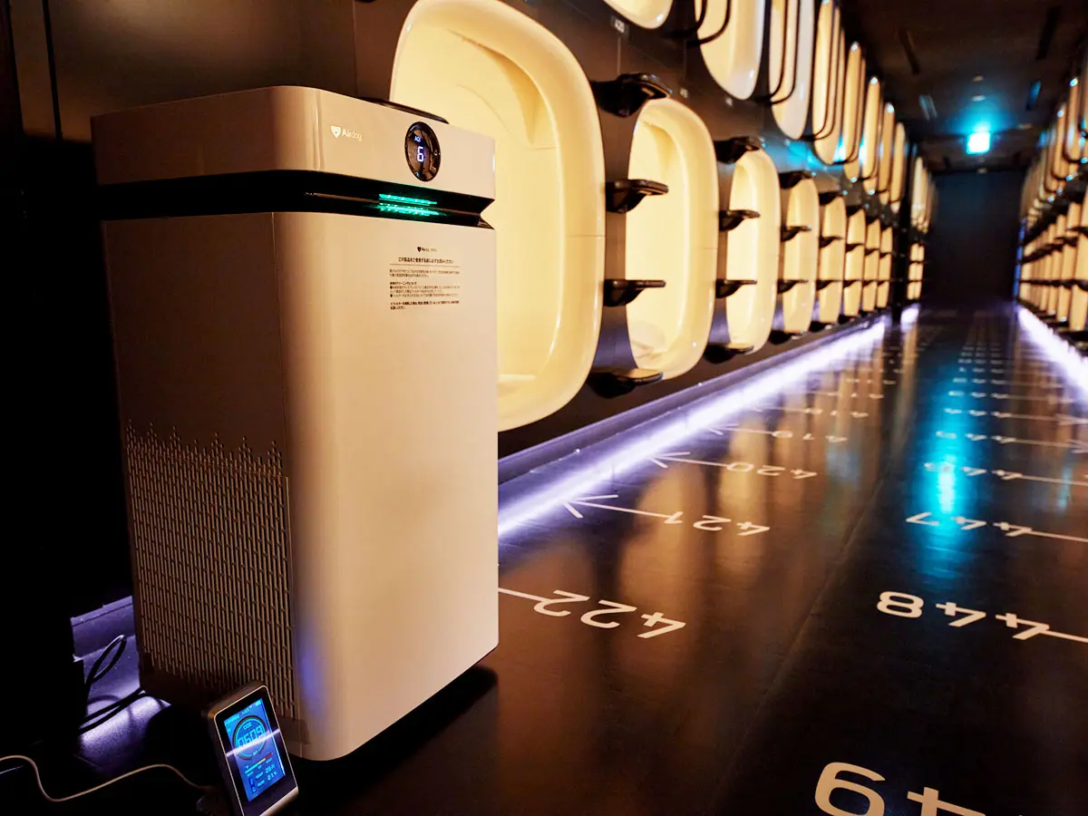 CO2濃度検知機器に加え、高性能な空気清浄器の設置により、カプセルフロア全体の空間を管理しながら安全に保ちます。