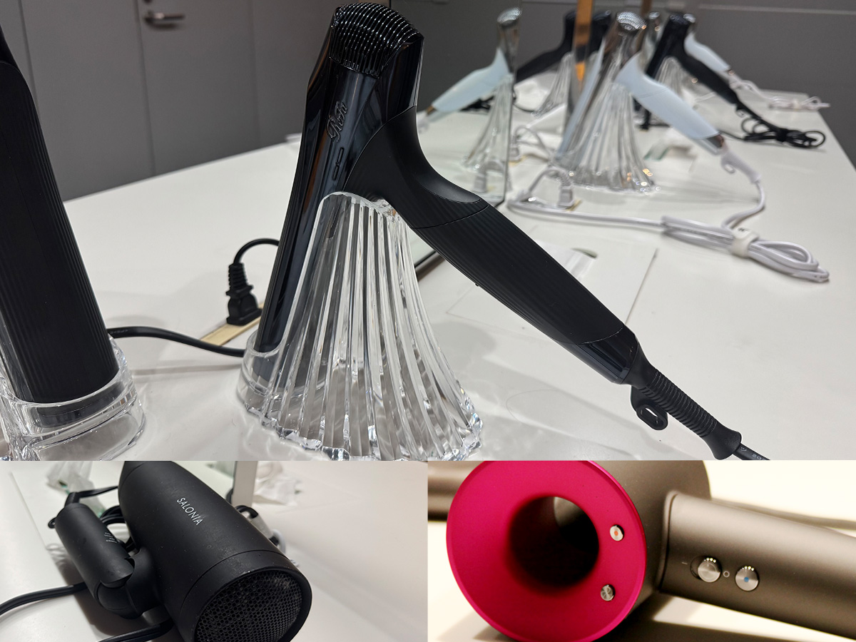 女性用にリファドライヤー(8台)、男性用にダイソンドライヤー(3台)、サロニアドライヤー(3台)をご用意。自分好みのシャンプーとトリートメントを選んだあとはしっかりとケア。