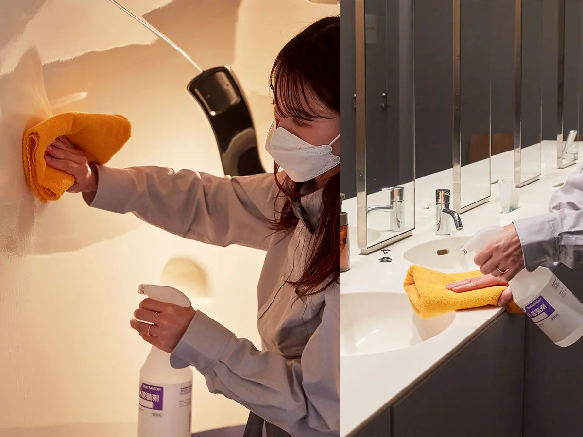 館内設備を安心してご利用いただけるようアルコールによる清掃を徹底しております。