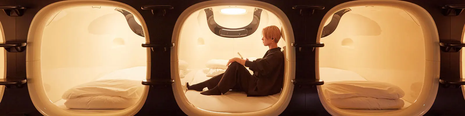 コンパクトですがスタイリッシュな空間のカプセルユニットで快適にお休みください。